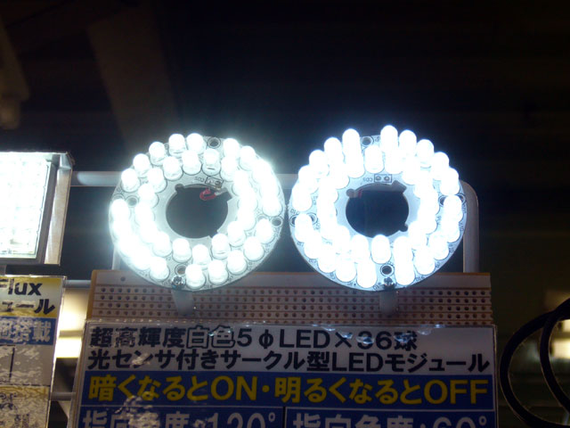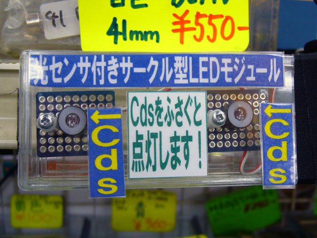 上記でご紹介したLEDモジュール各種はデジット店頭にて展示デモを行っております。光センサ付サークル型LEDモジュールの店頭展示デモは、光センサとなるCdsを外部へ引き出し、手元にて直接センサによるLEDモジュールの反応を体験していただけるようにしております。