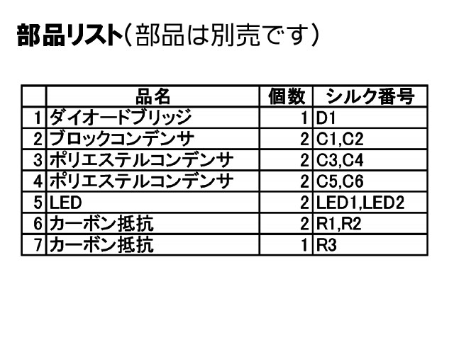 本製品は基板のみの販売ですので、必要なパーツは別途お求めください。使用する部品の値(定数)や種類は出力により(使用するトランスにより)変わります。どの部品を使用すればいいのか不明の場合は、遠慮なく店頭スタッフまでお尋ねください。必要部品は全てデジットでそろいます!