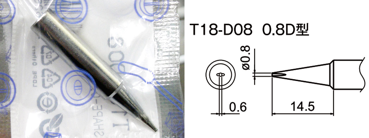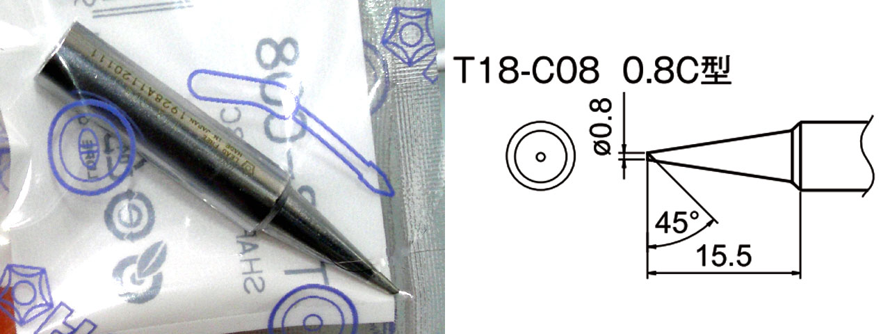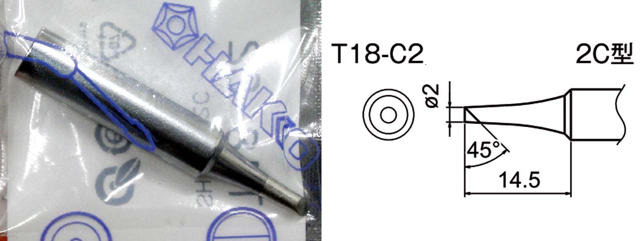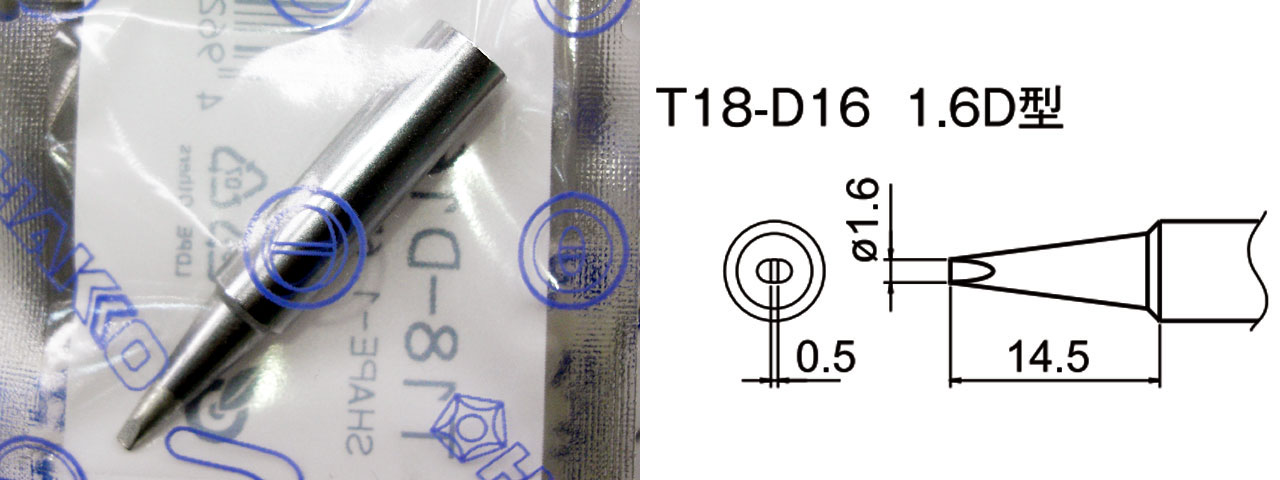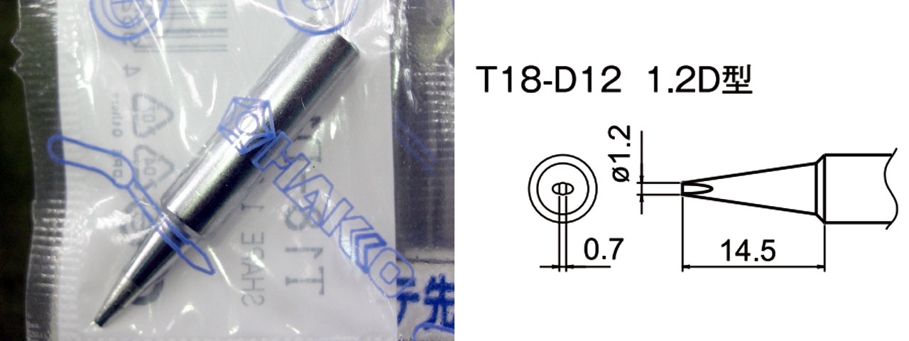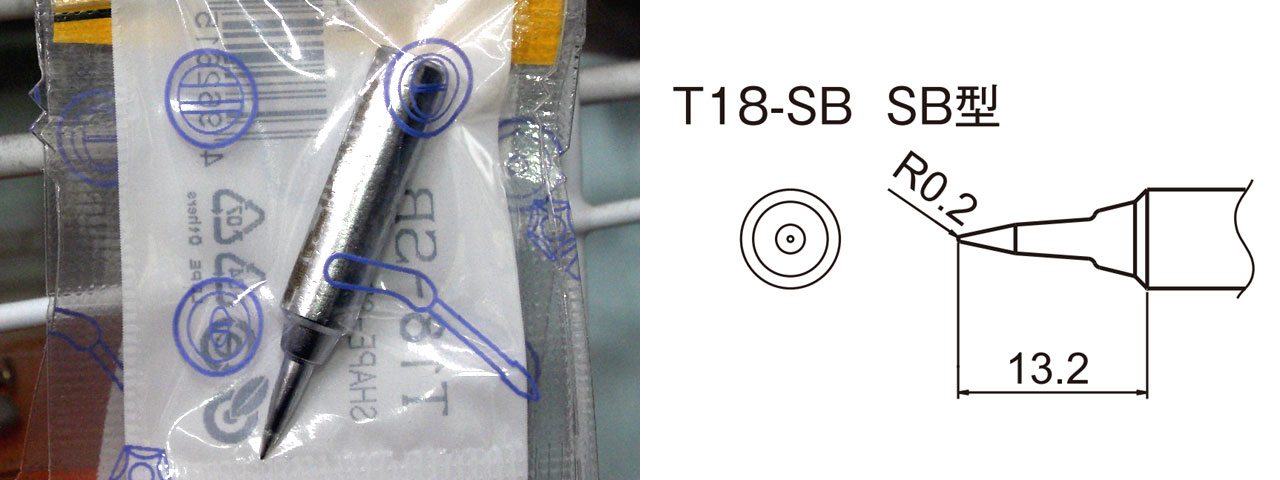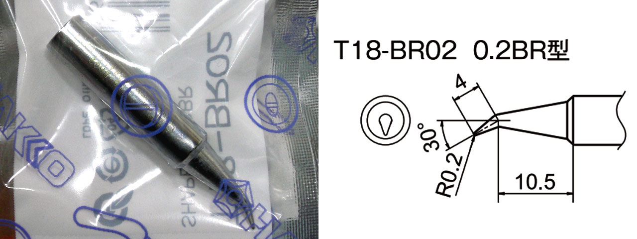 B型・I型の先端を曲げた型で、面と点の2つのあて方が可能なタイプ。引きはんだ、ブリッジ修正などに使用します。