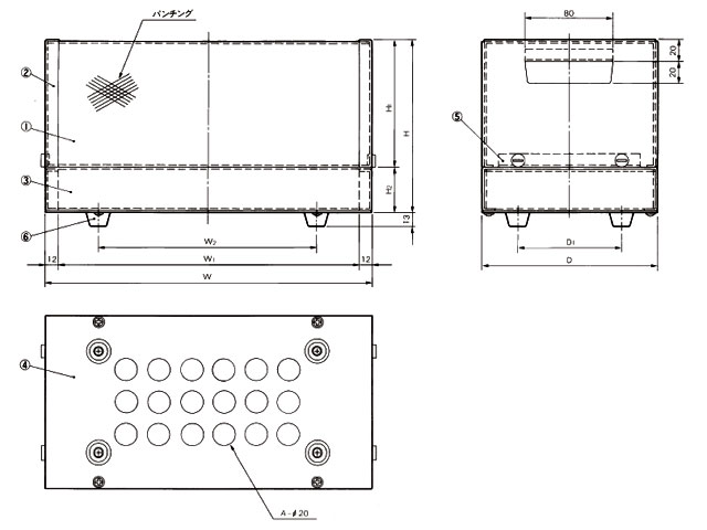 ・トップカバー(黒):SPCC(冷間圧延鋼板)、パンチング加工
