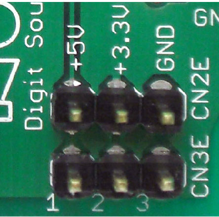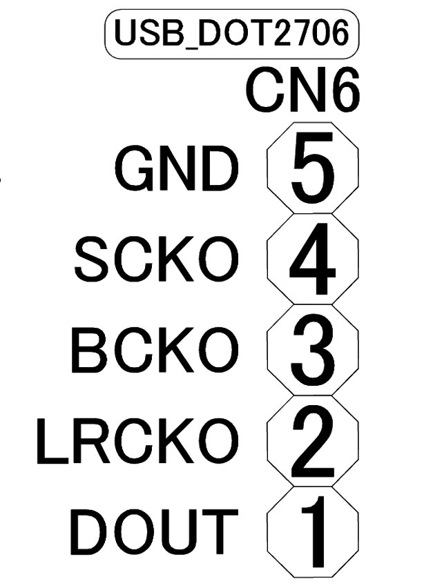 2つある5ピンヘッダピン[CN7とCN6]の内CN6の5本のピンがオーディオシリアル信号(Audio PCM信号)とシステムクロックとGND出力です。