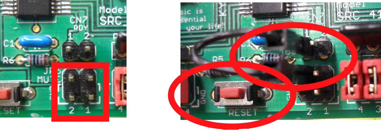 SRC4192_A基板の右下のCN8の1番ピンをショートプラグで設定します。