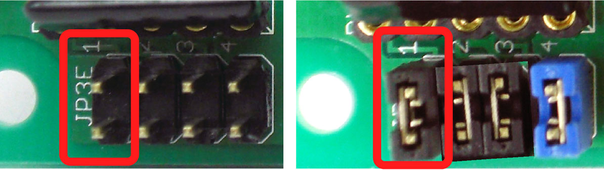 DIT4192_E基板の左下のJP3Eの1番ピンをショートプラグで設定します。