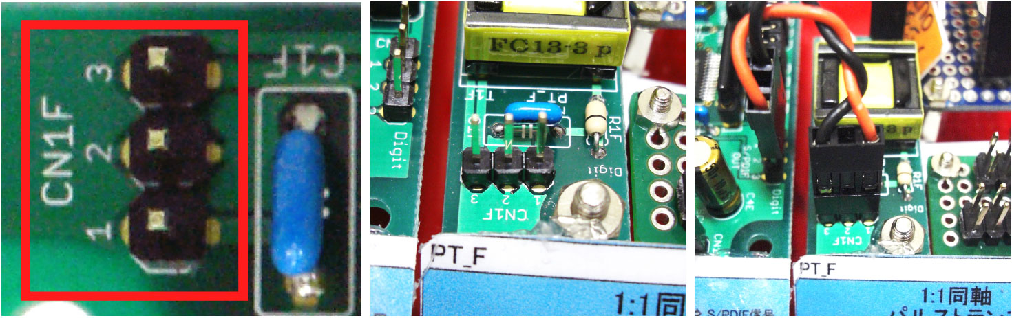 ●PT_FのCN1FにDIT4192_EからのS/PDIF信号(176.4kHz 24bit)を入力接続します。
