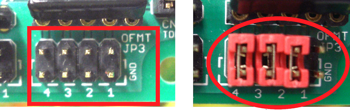 SRC4192_A基板の右下のJP3(OFMT)の4番、3番、2番、1番をショートプラグで