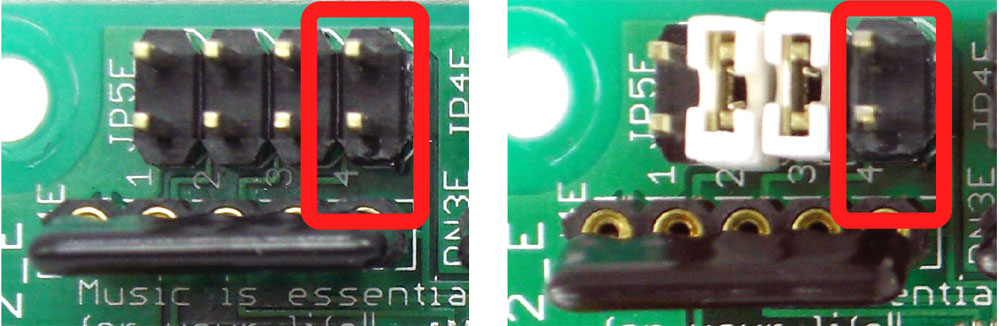 DIT4192_E基板の左上のJP5Eの4番ピンをショートプラグで設定します。