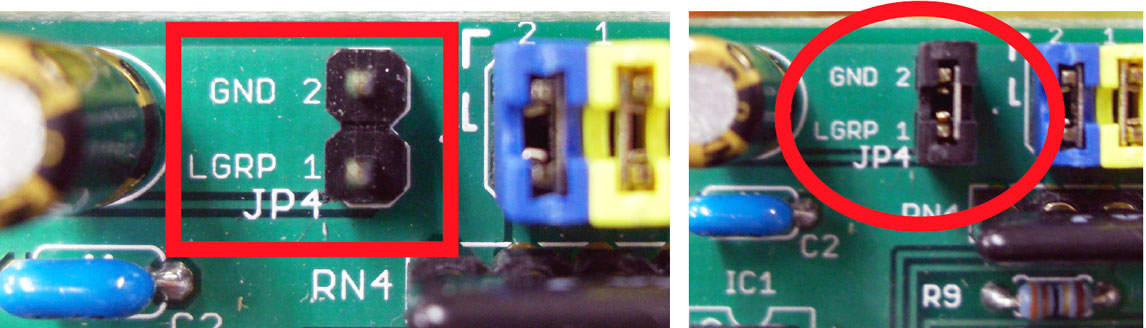 JP4(LGRP)にショートプラグをセットしGNDと接続します。