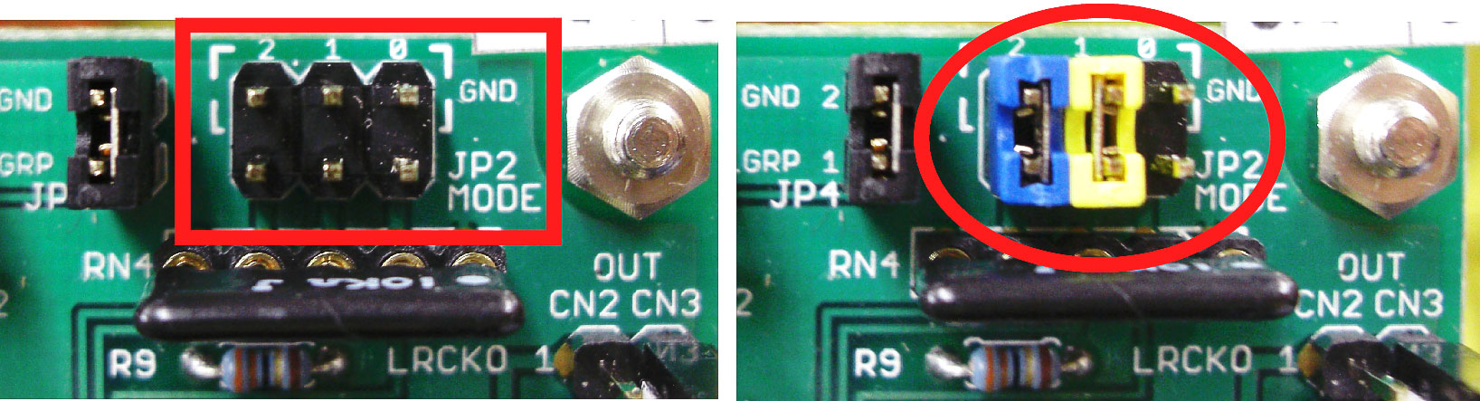 SRC4192_A基板の右上のJP2(MODE)の2番、1番、0番をショートプラグで設定します。