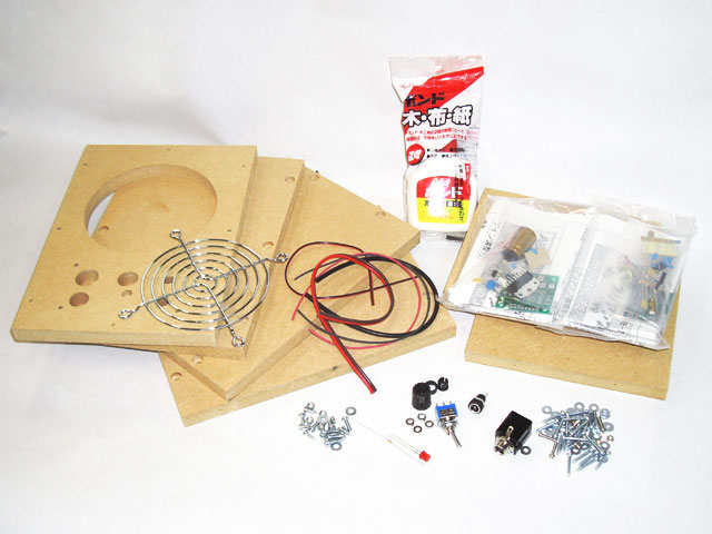 エンクロージャは、オーディオ用スピーカにも幅広く使用されているMDF(Medium Density Fiberboard=中密度繊維板)という木材を採用、初心者の方でも組み立てやすいように穴あけ加工済みですので、製作過程で穴あけ作業が不要です。全てがそろったフルキット!