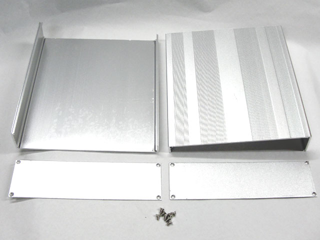 商品構成は、シャーシ、上フタ、前後パネル×2枚、パネル固定用の皿ネジ×8個。