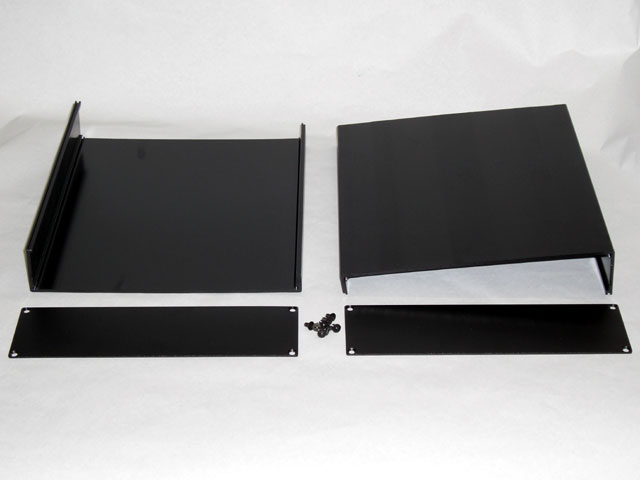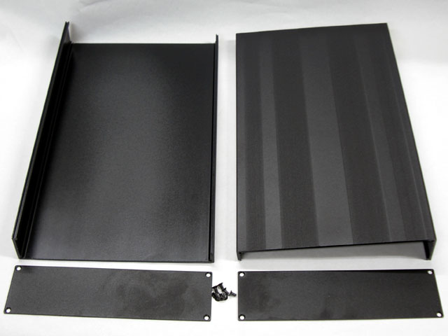 商品構成は上下分割シャーシ、前後パネル×2枚、パネル固定用の皿ネジ×8個。
