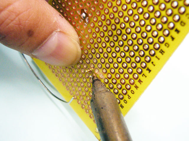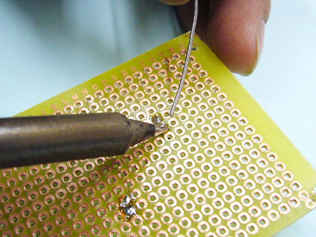 最後に仮ハンダしたところへ、今度はしっかりハンダ付けをします。