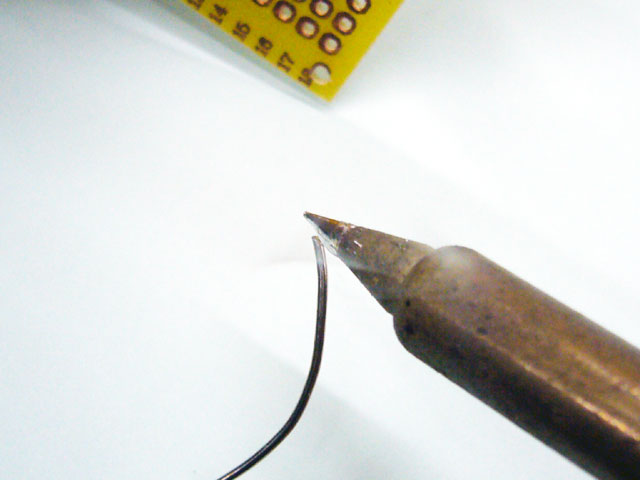 ハンダを溶かしてこて先に乗せておきます。