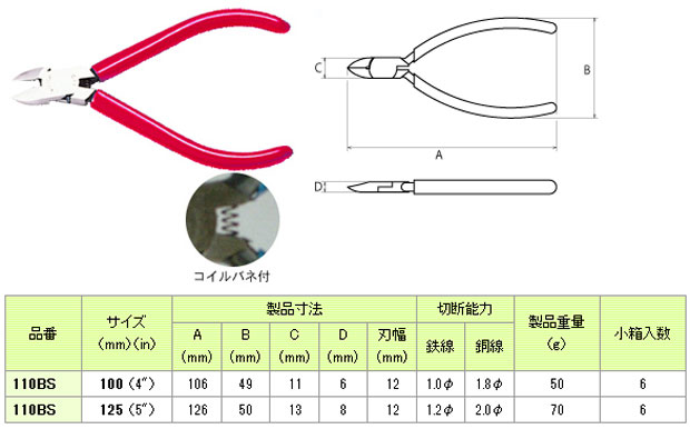 ◆マイクロニッパー 110BS 100mm¥2,820- / 125mm¥2,820-