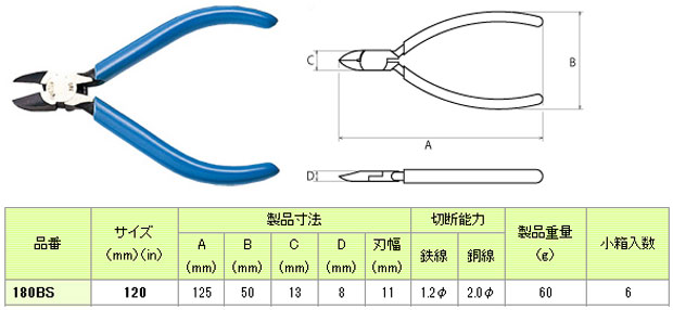 ◆マイクロニッパー 180BS 120mm¥3,840-
