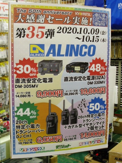 共立電子産業の創業50周年 大感謝セール 第35弾は「アルインコ」です!