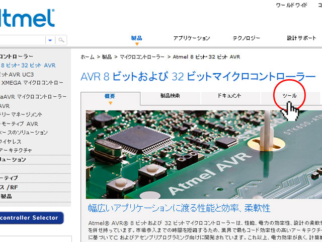 1:Atmelのホームページ(日本語サイト)