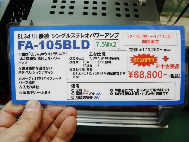 「EL84シングル ステレオパワーアンプ FA-108BLD」年末年始セール特価¥32,120(税込)完売