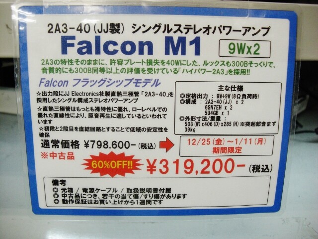 「2A3-40シングル ステレオパワーアンプ Falcon M1」年末年始セール特価¥319,200(税込)完売