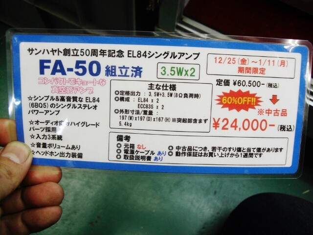 「サンハヤト創立50周年記念モデル EL84シングル ステレオパワーアンプ FA-50 組み立て済み」